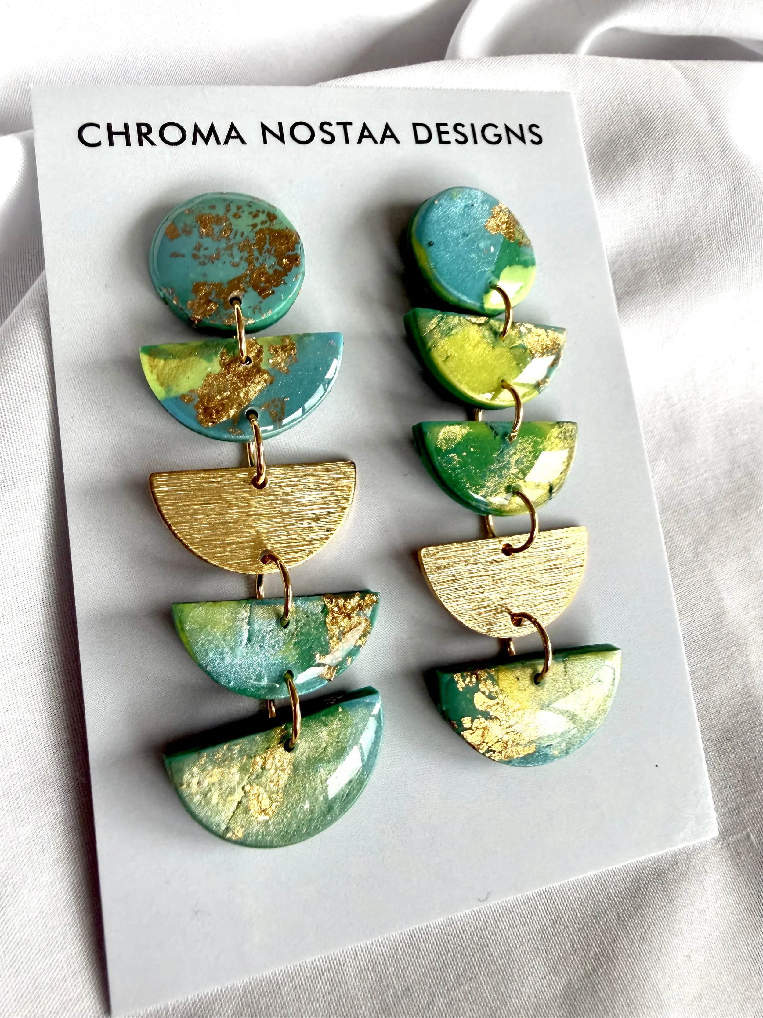 Categories: All Gift Card Sculptural Designs Minimalist Metal and Stone Seasonal Designs Make a statement Bestsellers All / Asymmetrical Statement Dangles in Safron and Earth $60.00 Peacock and Forest Oblong Modern Statement Earrings $58.00 Geometric elegant emerald green dangles $52.00 Cherry and Merlot pendulum dangles $58.00 Dragon Fruit Statement Earrings $65.00 Sold Out Earth, Forest and Sea Double circle moving dangles $65.00 Sold Out Carribean waters white gold loops $45.00 Sold Out Celestial Sun and Moon Polymer clay dangle Earrings $50.00 Sold Out Moving waters statement dangles $60.00 Sold Out Oblong Leopard statement dangles $50.00 Sold Out Elizabeth Taylor split shell studs $52.00 Sold Out Glowing copper drop dangles $42.00 Silver and lilac statement dangles $65.00 Sold Out Summery tropical pineapple dangles $45.00 The Maya $48.00 Modern wave earrings $48.00 Sunshine Drops $45.00 Serrano loop earrings $45.00
